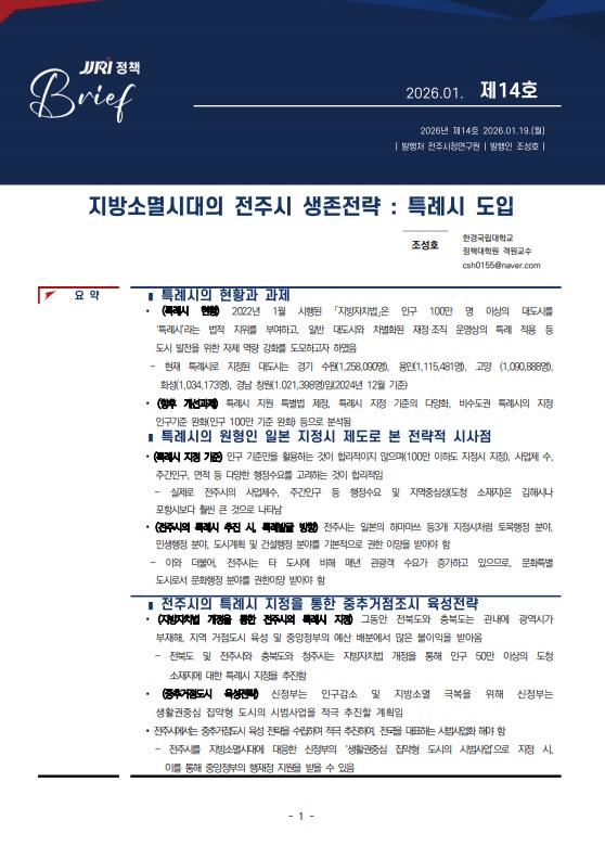 정책브리프 제14호: 지방소멸시대의 전주시 생존전략-특례시 도입