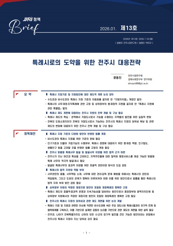 정책브리프 제13호: 특례시로의 도약을 위한 전주시 대응전략