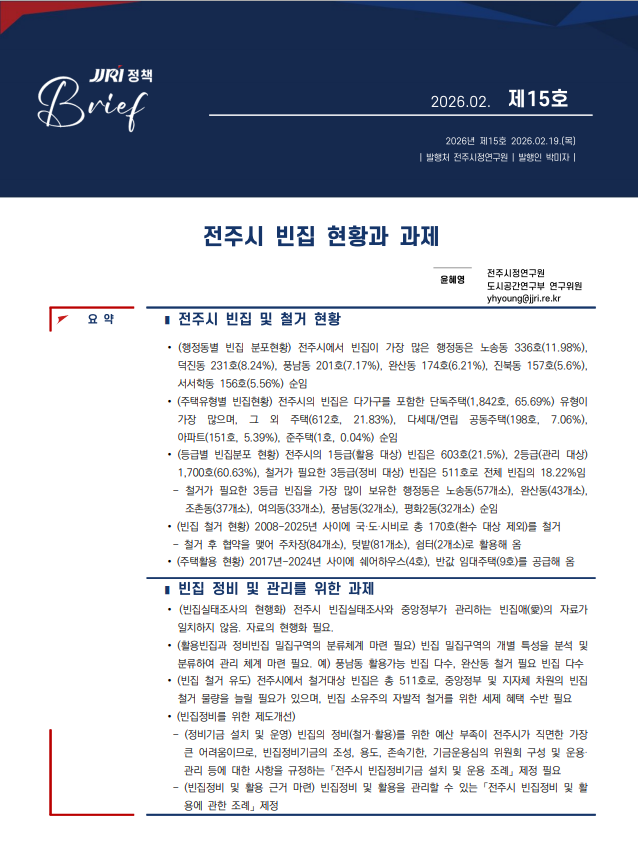 정책브리프 제15호: 전주시 빈집 현황과 과제